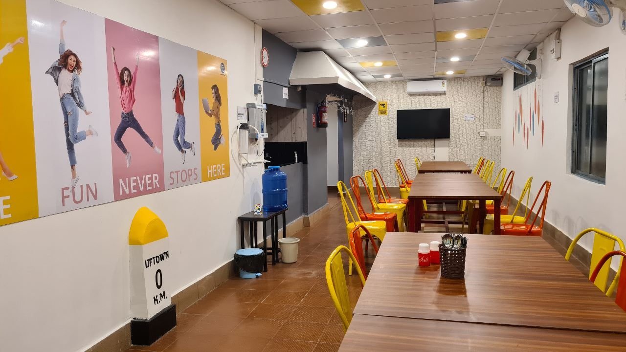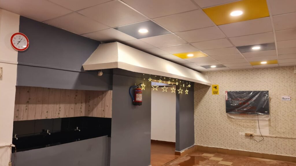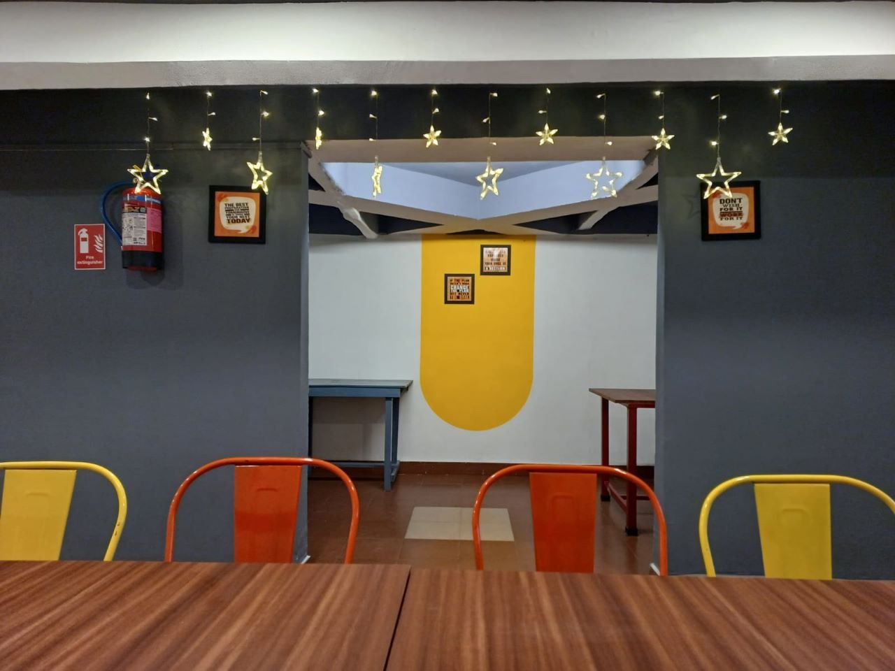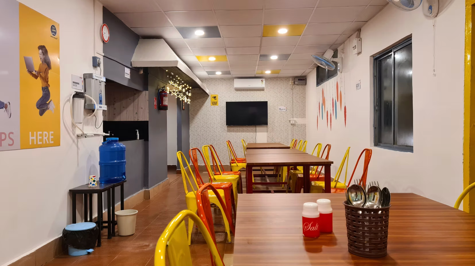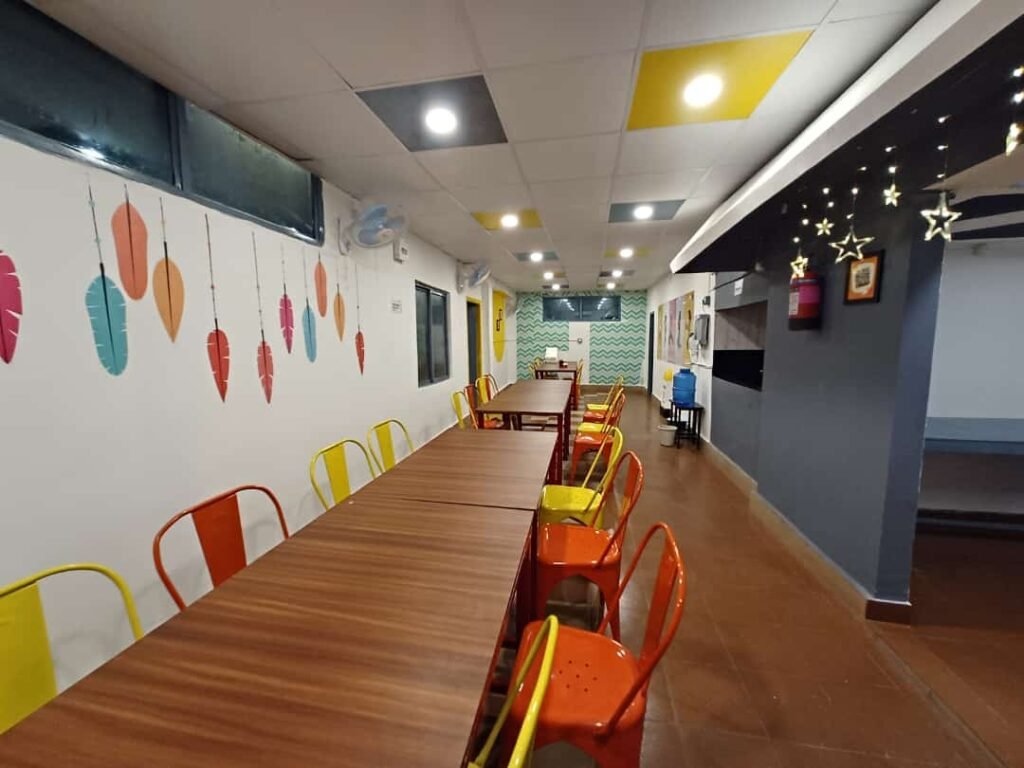 AC cafeteria cum dining area with contemporary café décor & water heater